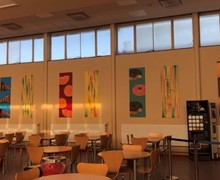 Posted on: 07/02/2020We are thrilled to have Morgan's wonderful art panels up on display in The Bistro after many months of preparation. They aptly formed an uplifting and vibrant backdrop to our staff well-being breakfast on Friday.